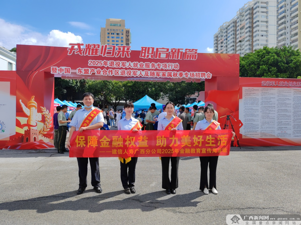 为深入贯彻落实国家关于做好退役军人服务保障工作的重要精神,切实维护退役军人的金融安全和合法权益,持续提升公众金融素养和风险防范能力,近日,建信人寿广西分公司走进广西展览馆,参与广西壮族自治区退役军人事务厅、广西壮族自治区人民政府国有资产监督管理委员会等部门联合组织的“2025年退役军人就业服务专项行动暨中国—东盟产业合作区退役军人及随军家属秋季专场招聘会”,开展“保障金融权益 助力美好生活”主题公益金融教育宣传活动。