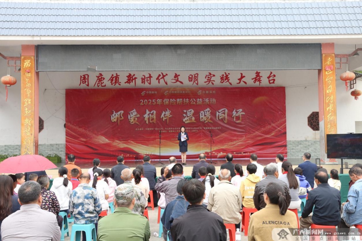 10月30日上午,南宁市马山县周鹿镇广场人头攒动、暖意融融。中邮保险广西分公司联合中国邮政南宁市分公司,携手马山县农业农村局、周鹿镇人民政府、乔利乡人民政府共同开展“邮爱相伴・温暖同行——保险帮扶助力乡村振兴”公益活动,以“金融 + 健康”双轮驱动模式,为当地脱贫群众与留守儿童送去实打实的保障与关怀。