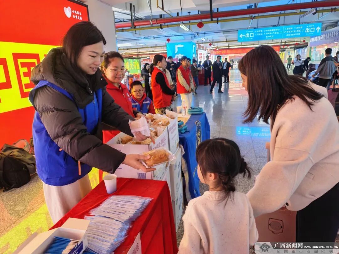 2月5日,来宾中支开展了“防非反诈护财产,优化服务惠民生”主题活动。工作人员深入社区、走进家庭、面向客户,通过面对面讲解、发放宣传折页、现场答疑解惑等多种形式,用通俗易懂的语言向居民和客户揭示非法集资、电信网络诈骗等非法金融活动的常见手法和危害,普及金融安全知识和识别防范技巧。 2月6日,时值春运返乡高峰,贵港中支组织志愿者团队,在当地客运站、火车站等人流密集区域设立爱心服务点。志愿者们为奔波在返乡路上的旅客提供热水、应急充电、行李搬运、路线咨询等暖心帮助,并准备了应急药品和口罩等物资,在寒冬中送上贴心的关怀与便利。